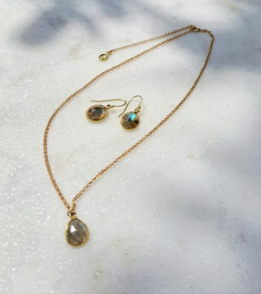 • Materialien: 925er Silber vergoldet (18K), Labradorit, Turmalin